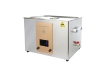 通過換能器,將功率超聲頻源的聲能轉(zhuǎn)換成機(jī)械振動(dòng),通過清洗槽壁將超聲波輻射到槽子中的清洗液。由于受到超聲波的輻射,槽內(nèi)液體中的微氣泡能夠在聲波的作用下快速變大破裂,破裂時(shí)產(chǎn)生的高強(qiáng)度剪切力作用于各類樣品上,從而達(dá)到清洗、提取、乳化、加速溶解、粉碎、分散等作用。
